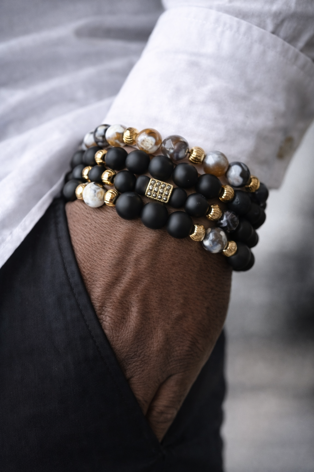 Dalmatian Bead Bracelet Set For Men (Salasi)